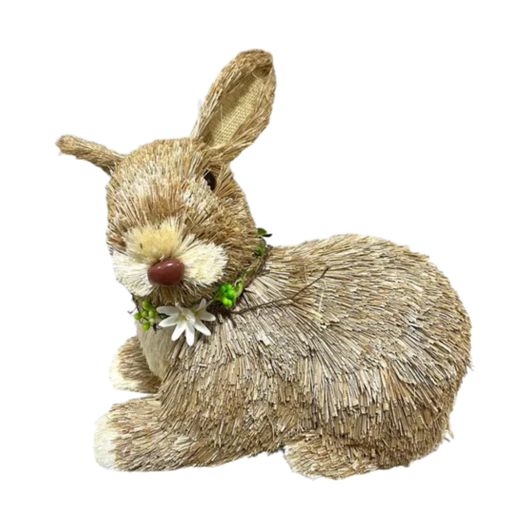 Coelho Páscoa Deitado Decoração Palha Italiana 28cm