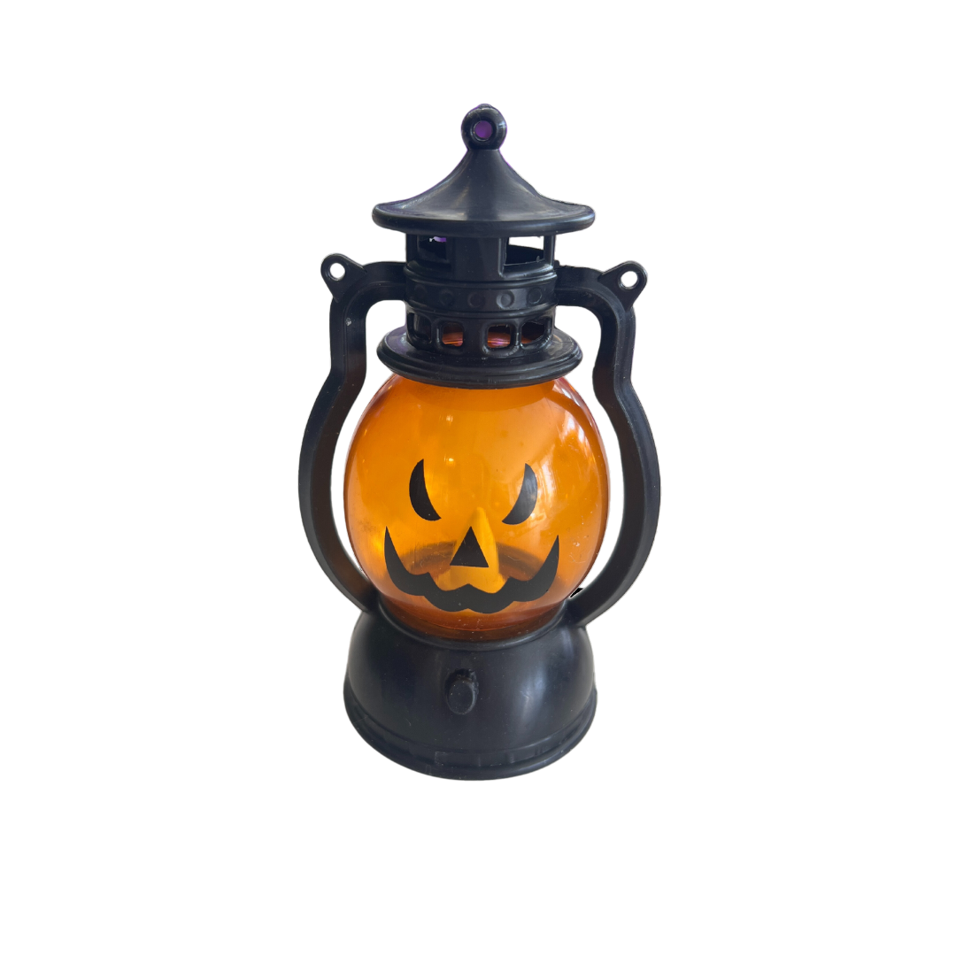 Modelo abóbora em formato de lanterna lamparina antiga com seu corpo feito totalmente em um plástico com transparência.